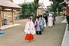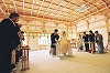 | 結婚式は日本古来の神前式で挙げたいと言われる若い人が増えています。当社においても本格的な社寺作りの御社で思い出に残る神前式を挙げたい方のお申し込みが増えてきました。式には松式、竹式、結婚奉告祭とあり、特に松式では鹿児島で初めての「舞楽」※も奉仕されます。 |
